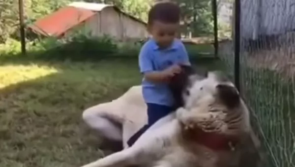 Ребенок разбудил огромного алабая, чтобы поцеловать – видео