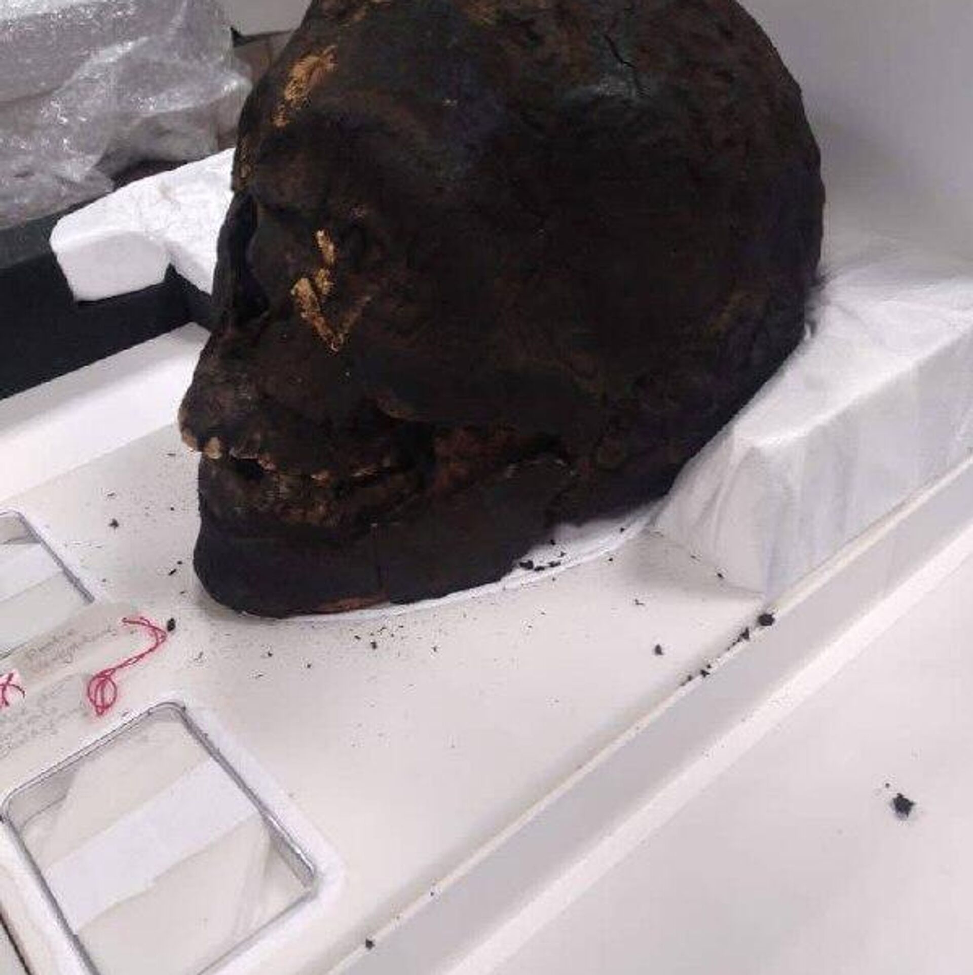 Из ФРГ были возвращены череп и рука неизвестной мумии, а также амулет анкх – символ жизни в Древнем Египте.