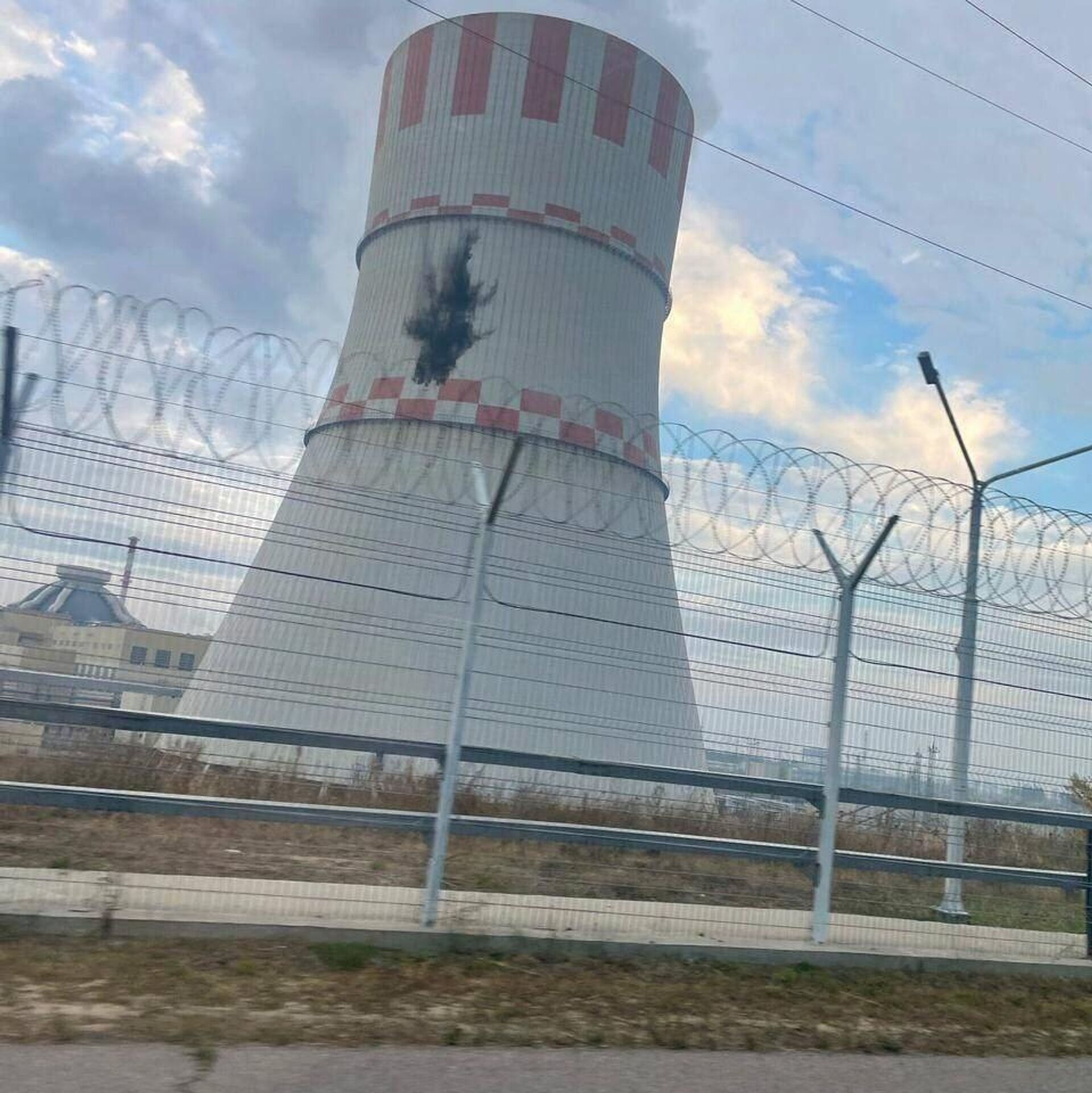 Разрушений и пострадавших нет, но на градирне от БПЛА остался темный след.