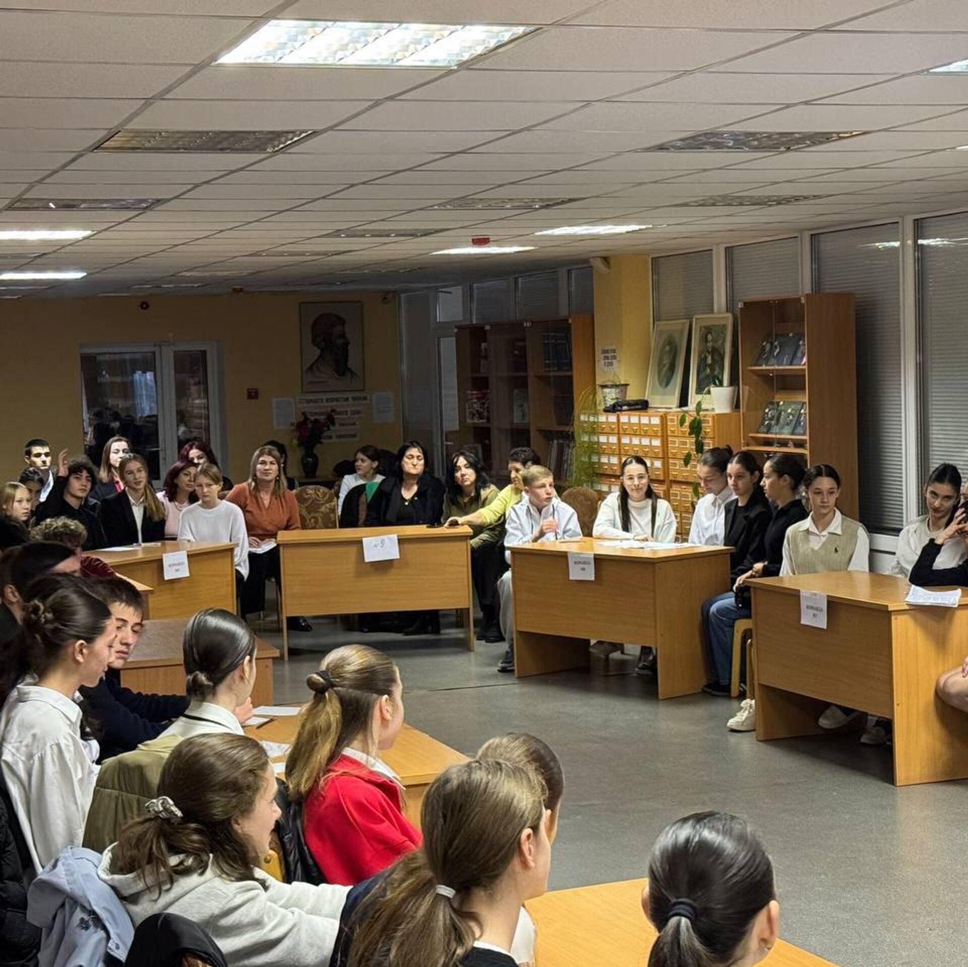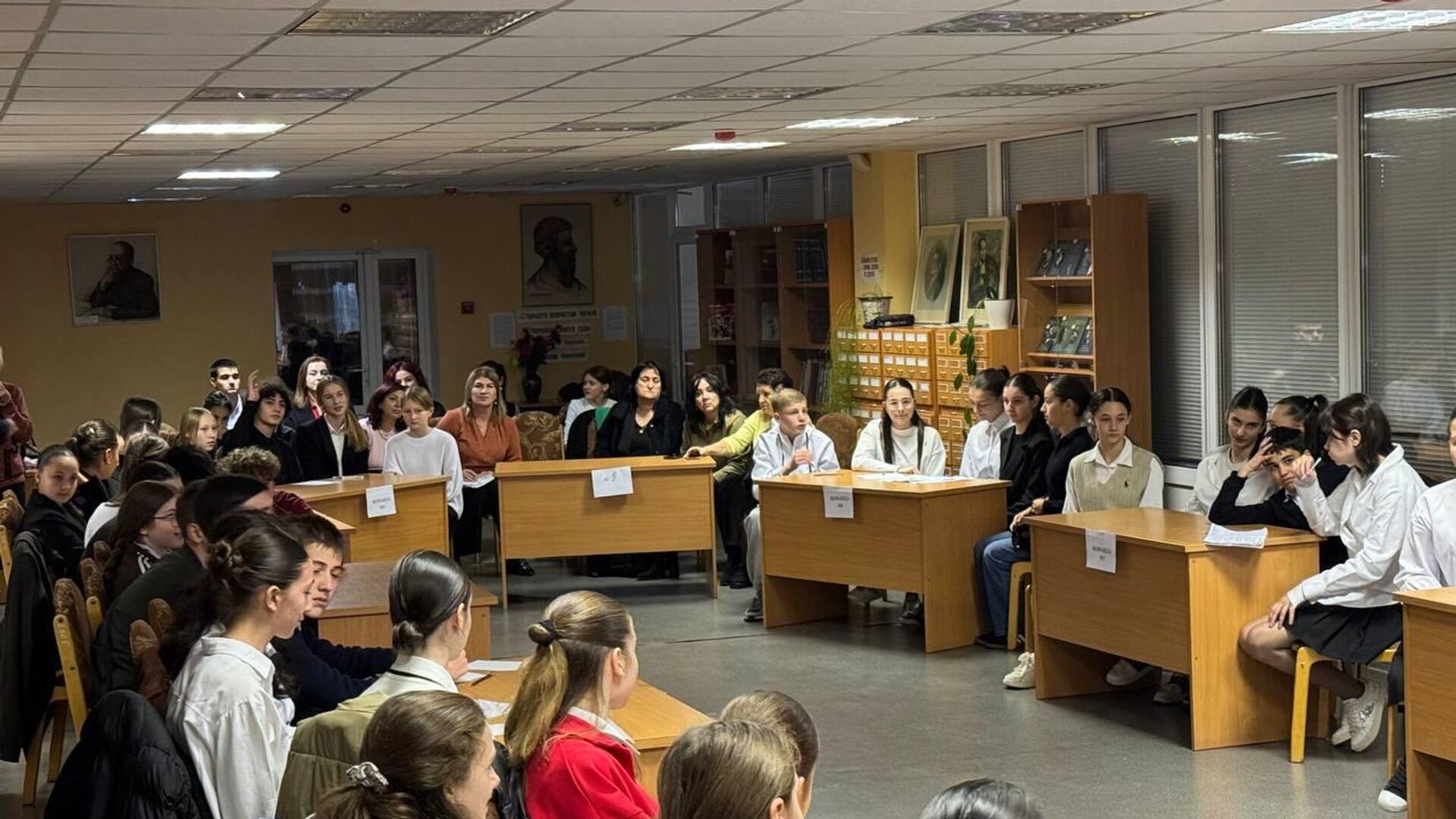 В мероприятии, которое проходит в Республиканской национальной библиотеке им. Анахарсиса, принимают участие команды девятиклассников из восьми среднеобразовательных учреждений Цхинвала – школ № 1, 2, 3, 5, 6 и 11, а также гимназий "Рухс" и "Альбион".