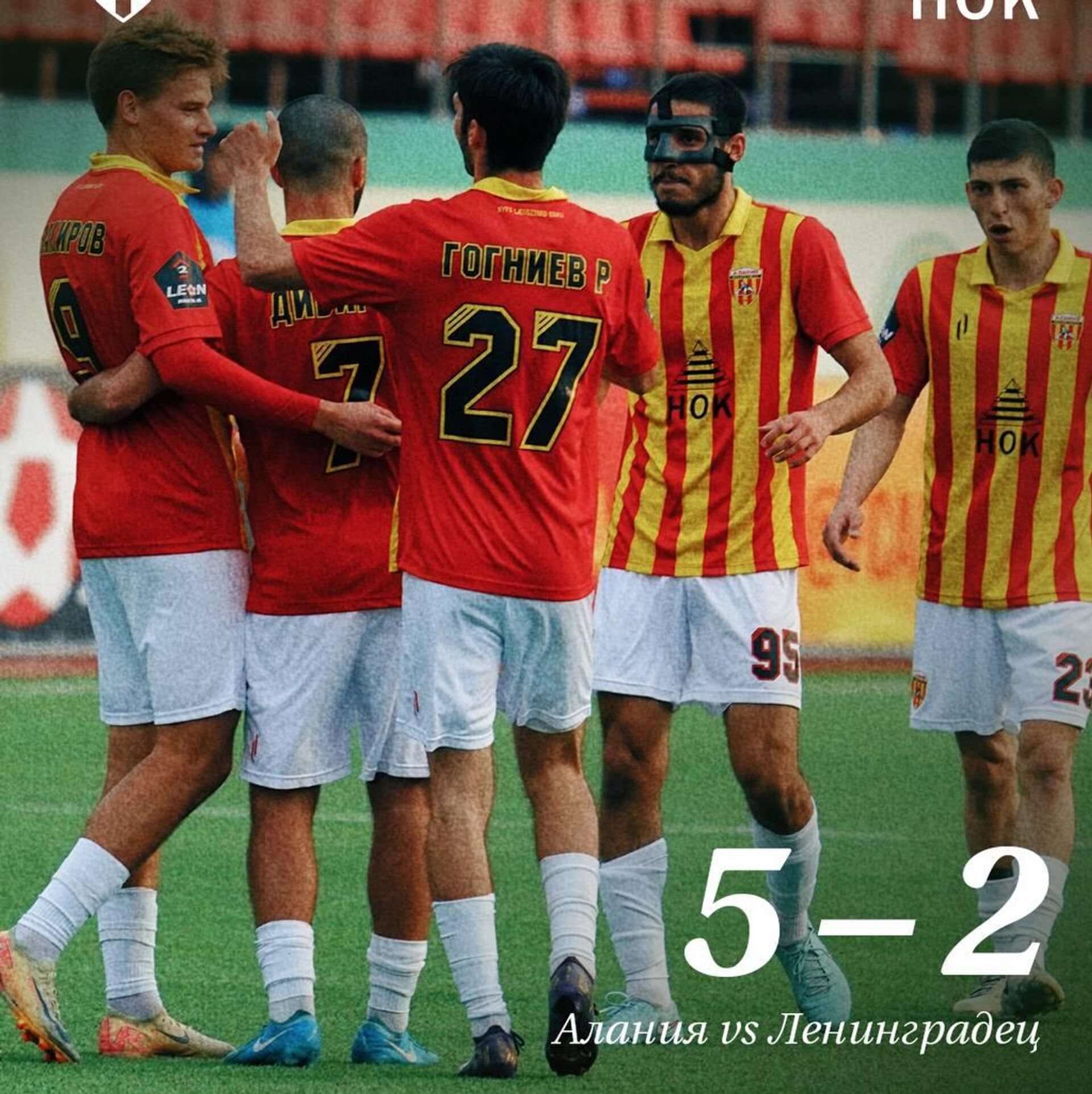 Встреча, прошедшая в Грозном, завершилась разгромной победой красно-желтых со счетом 5:2. Голами в составе команды отметились Спартак Гогниев, Артем Закиров (хет-трик) и Артур Бязров.