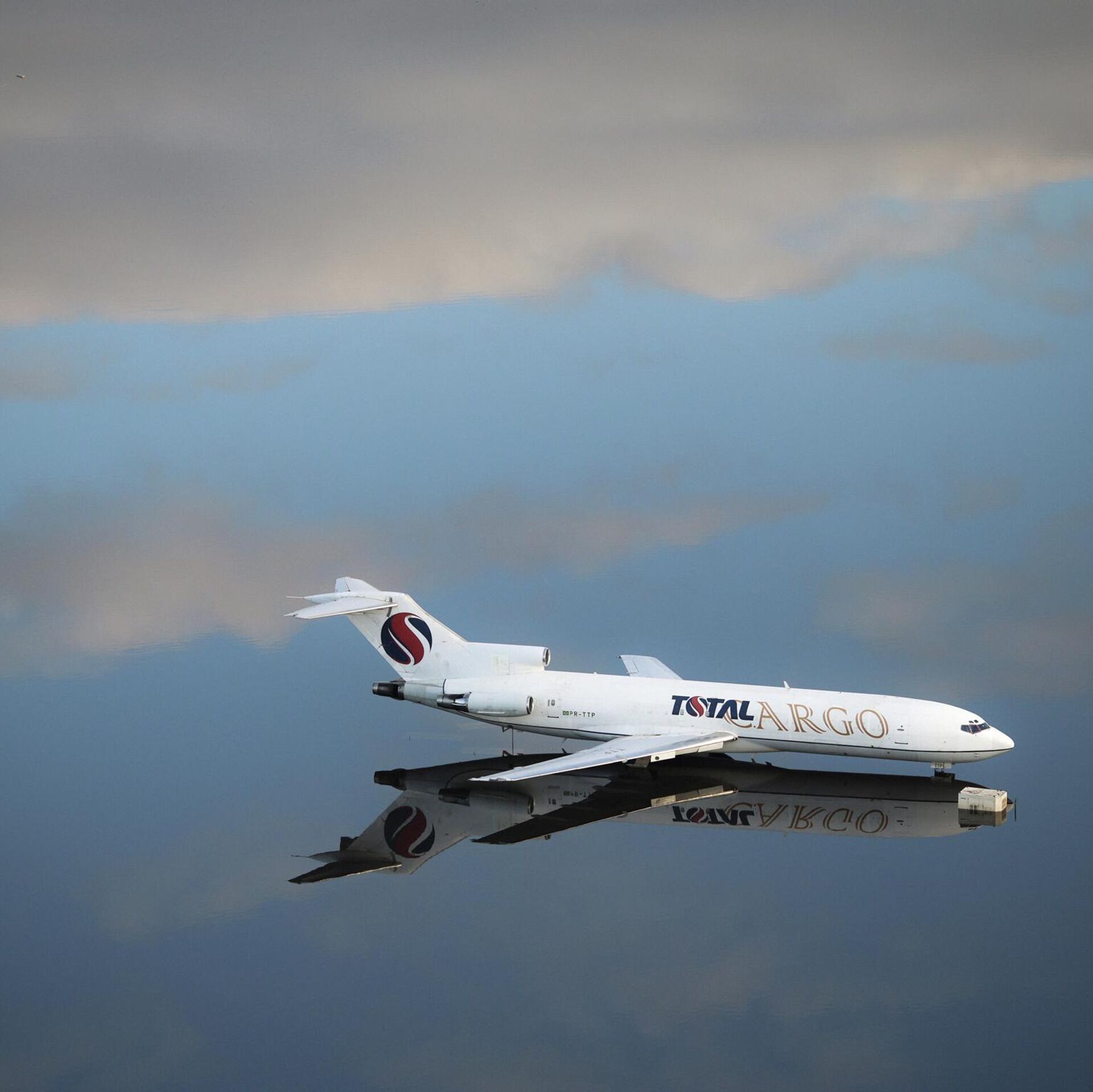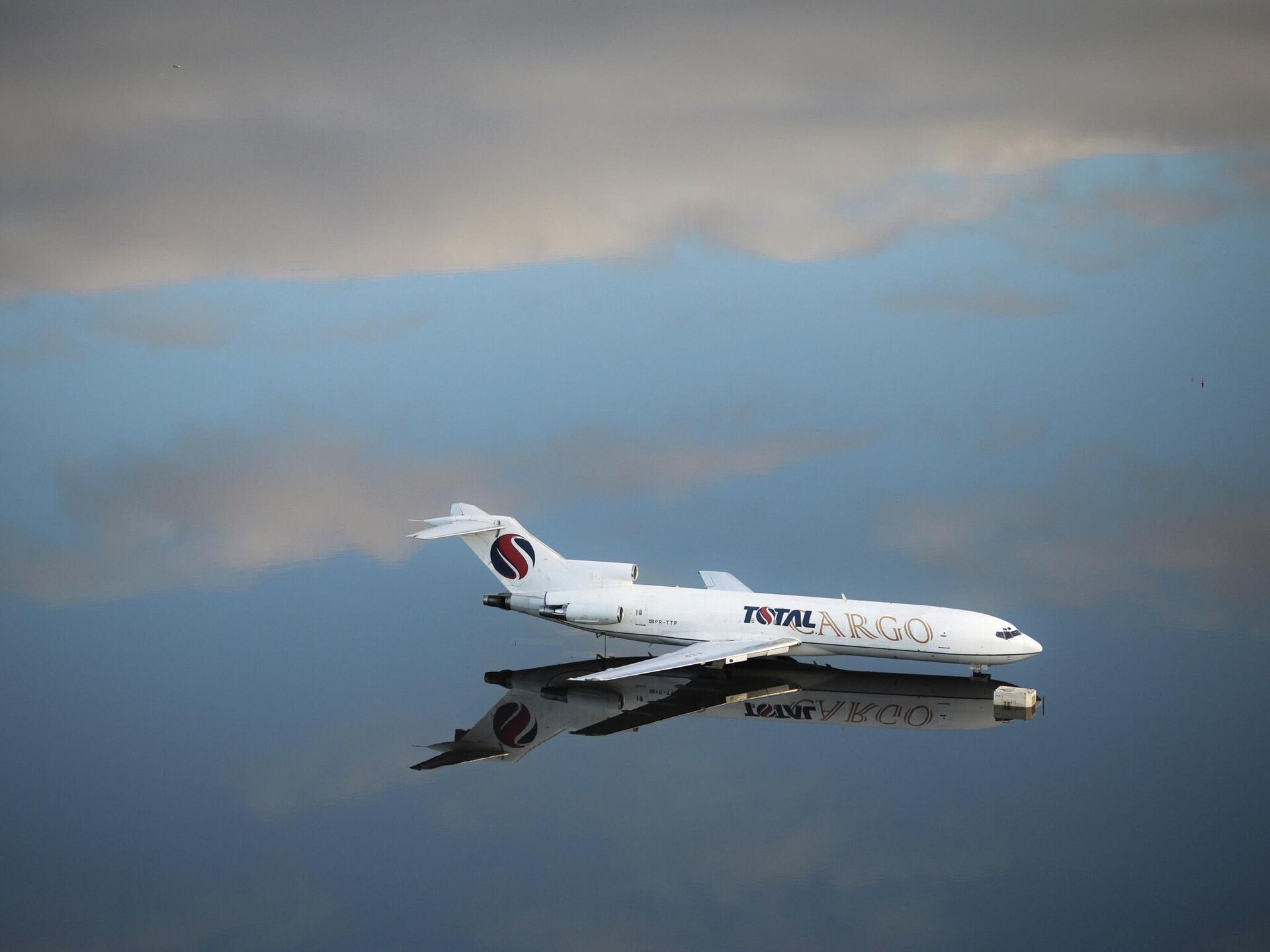 Самолет на взлетной полосе затопленного аэропорта