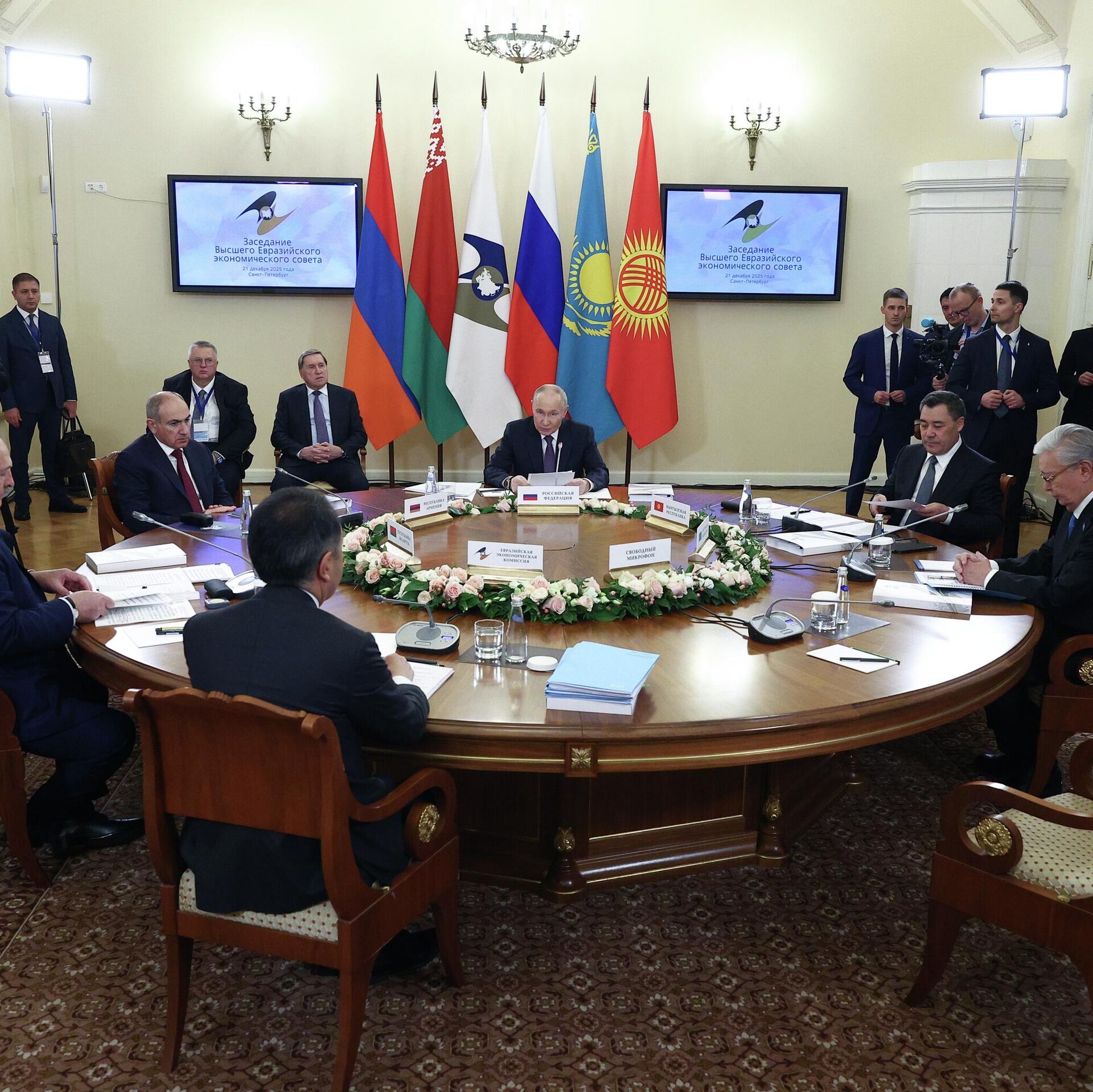 ЦХИНВАЛ, 21 дек - Sputnik. Евразийский экономический союз (ЕАЭС) прочно утвердился в качестве самодостаточного центра формирующегося многополярного мира, заявил президент России Владимир Путин во время заседания Высшего Евразийского экономического совета в узком составе, сообщает РИА Новости.Российский лидер отметил, что сотрудничество в рамках Евразийского экономического союза, прочно утвердившегося в качестве одного из самостоятельных и самодостаточных центров формирующегося многополярного мира, продолжает поступательно развиваться, расширяются взаимные торговые и инвестиционные обмены, углубляются кооперационные связи участников объединения.Участники заседания в Санкт-Петербурге планируют в понедельник обсудить актуальные вопросы деятельности ЕАЭС и наметить ориентиры для дальнейшего углубления интеграционных процессов и развития единого рынка союза, а также утвердить ряд значимых документов и решений. В частности, ожидается подписание Соглашения о свободной торговле между Евразийским экономическим союзом и Индонезией.Путин подчеркивал, что Россия высоко ценит взаимовыгодное многоплановое сотрудничество с партнерами по ЕАЭС и искренне заинтересована в активизации совместной работы по всестороннему укреплению объединения.