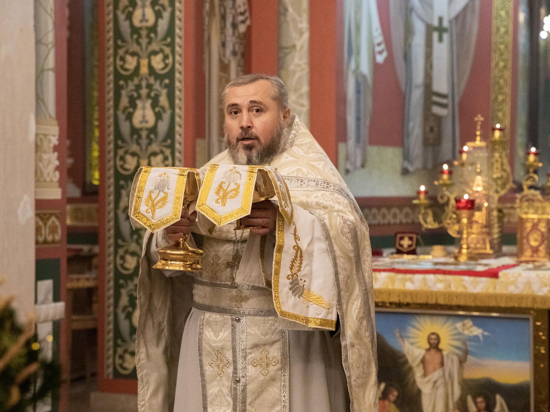 В храме Пресвятой Троицы в Цхинвале в полночь началось праздничное богослужение, которое совершил отец Сергий.