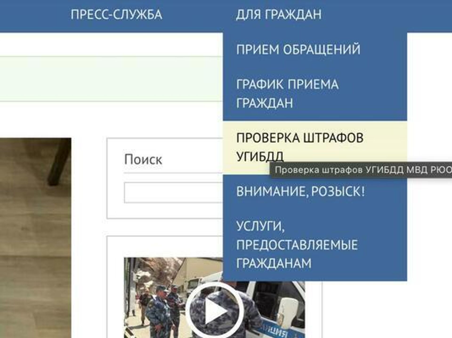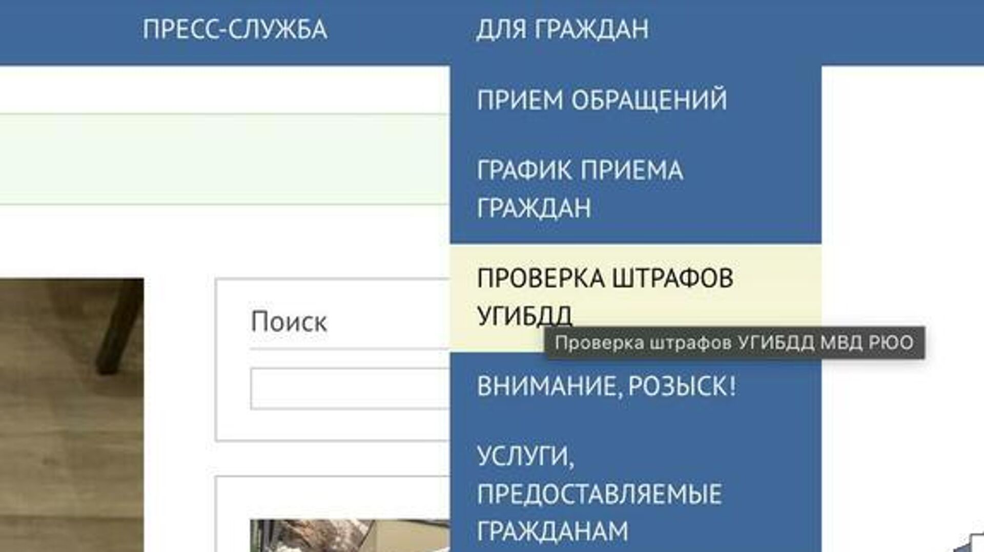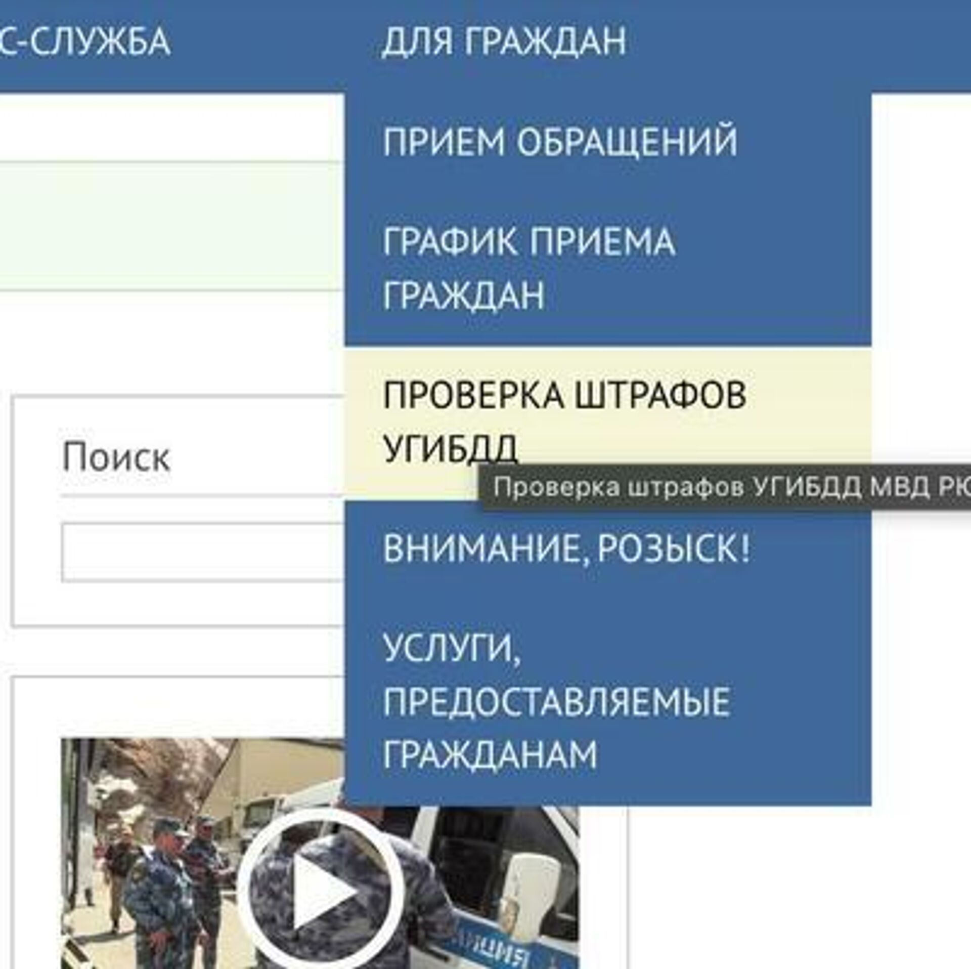 Зайти на официальный сайт МВД РЮО.