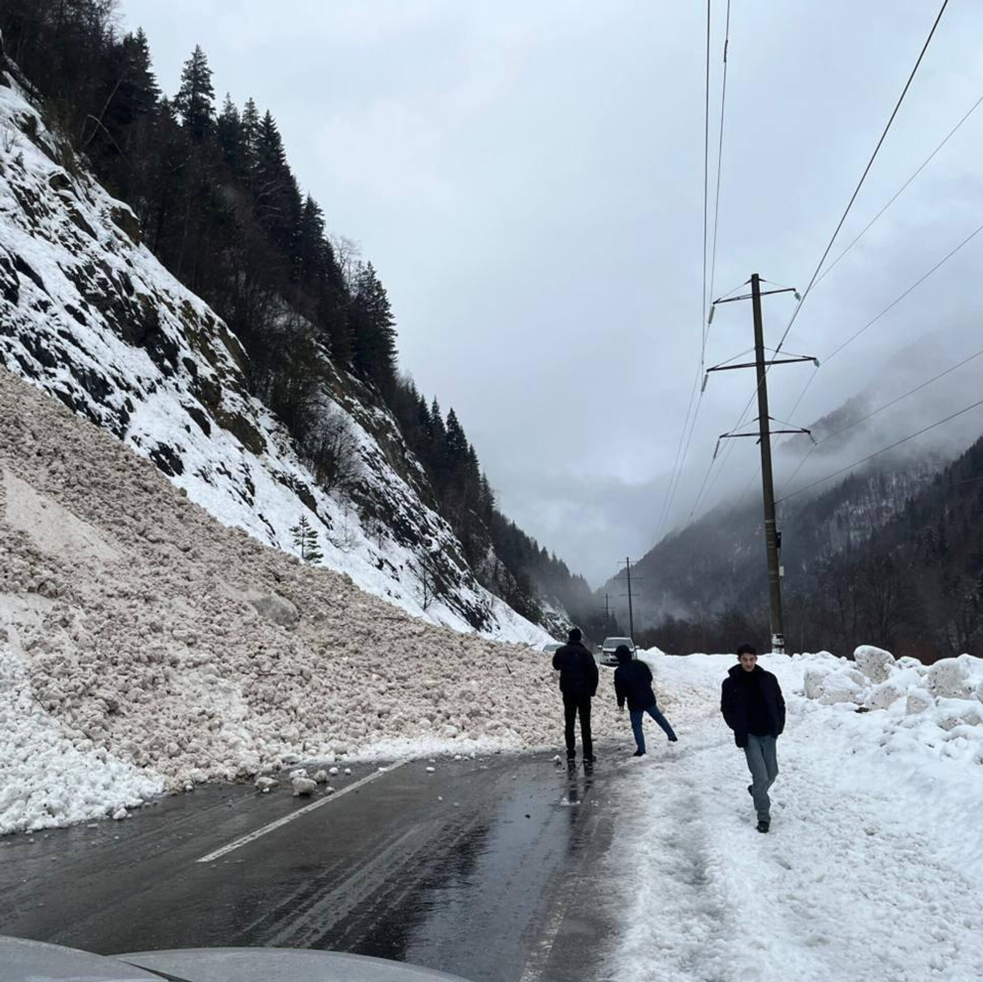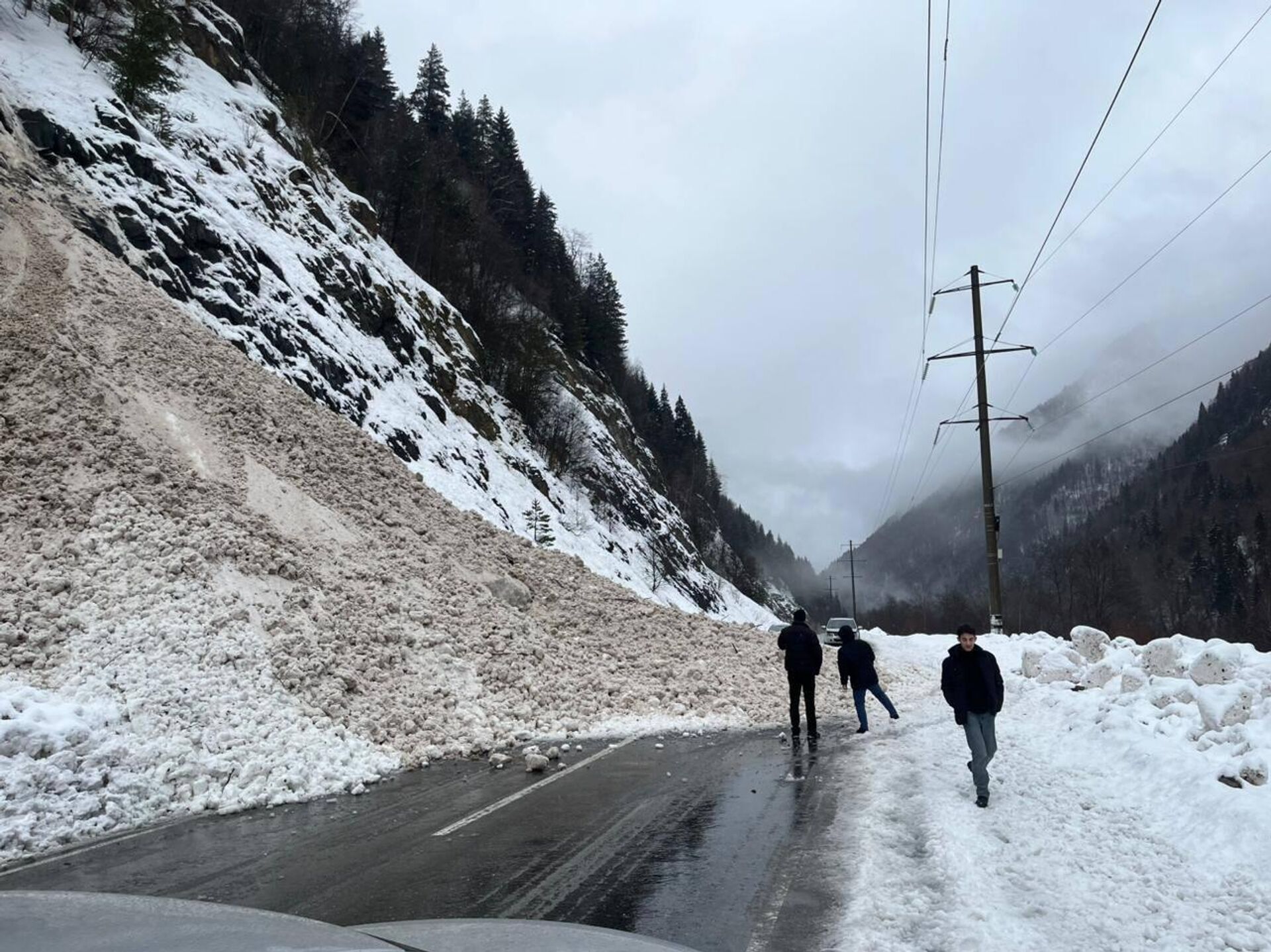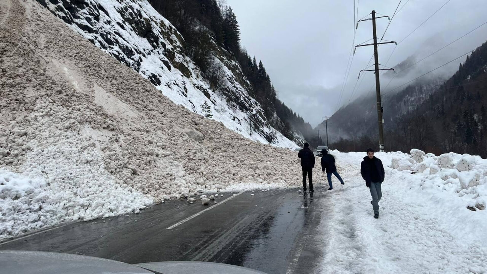 Лавина сошла на Транскам в районе села Уанел