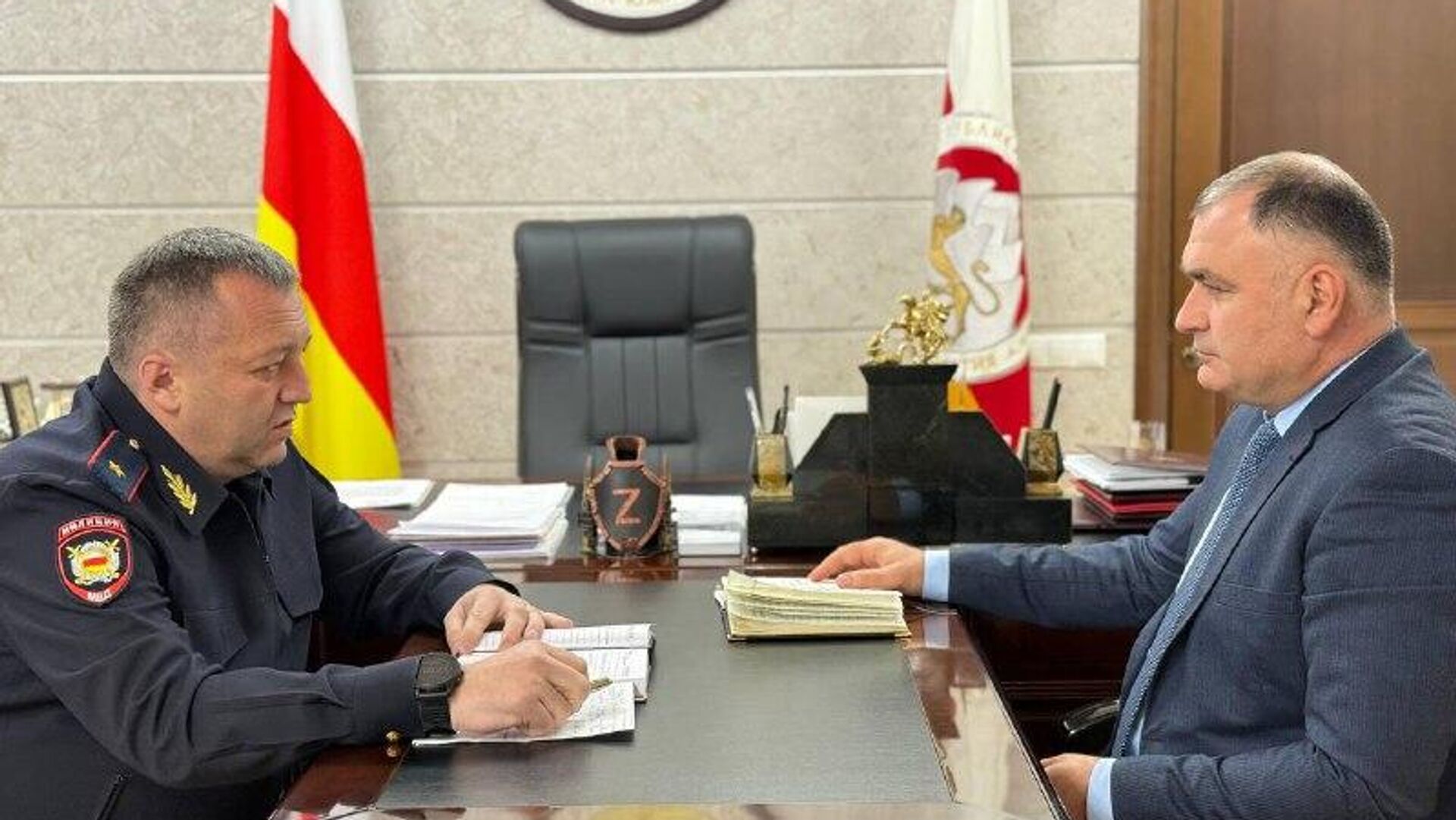 Президент Алан Гаглоев провёл встречу с и.о. министра внутренних дел Эриславом Мамиевым⠀