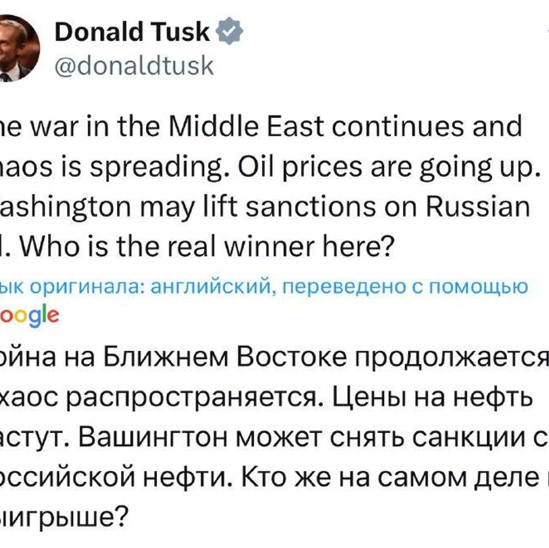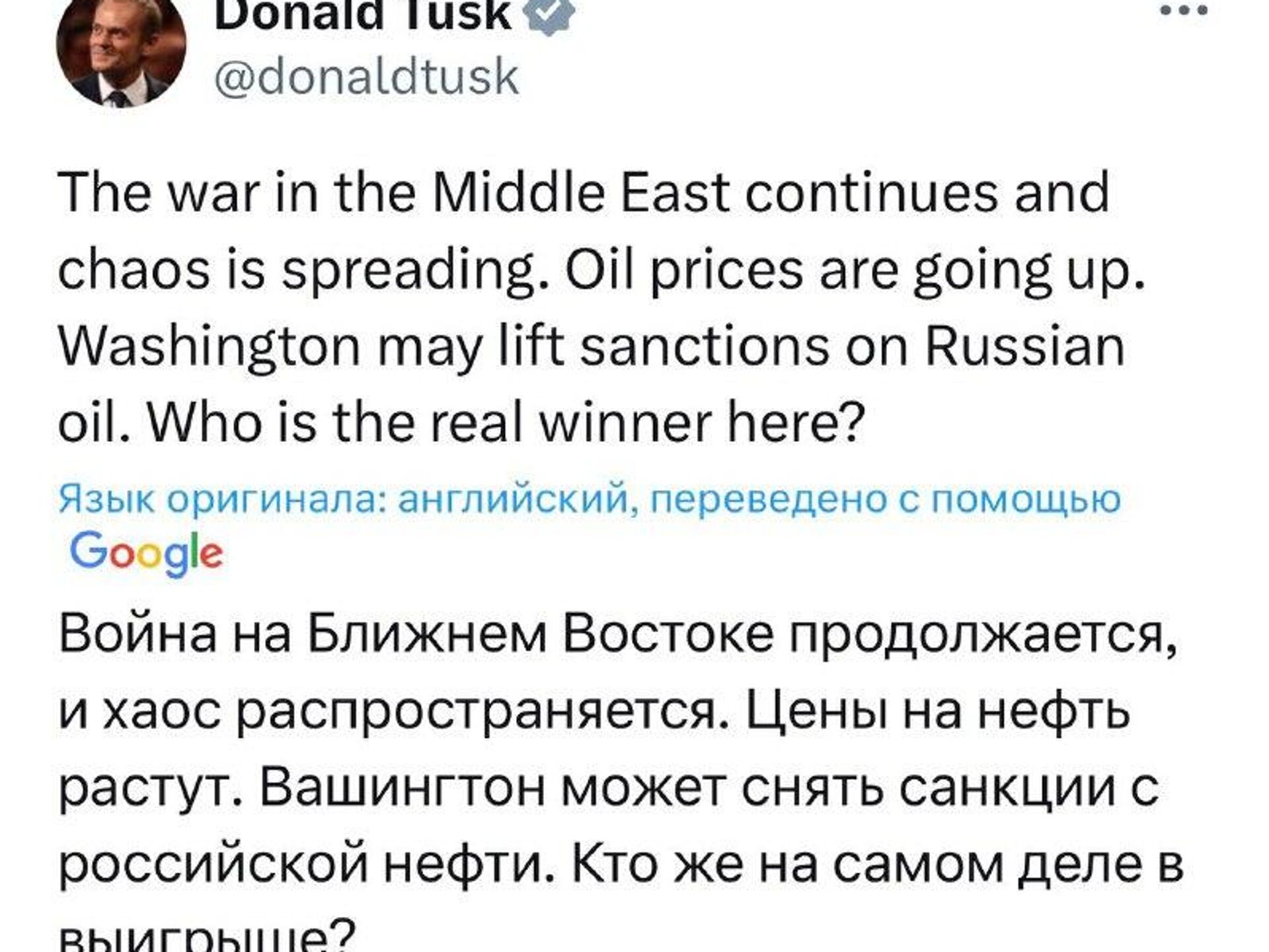 "Кто в реальности выигрывает от конфликта на Ближнем Востоке?", – задался вопросом премьер Польши Туск.