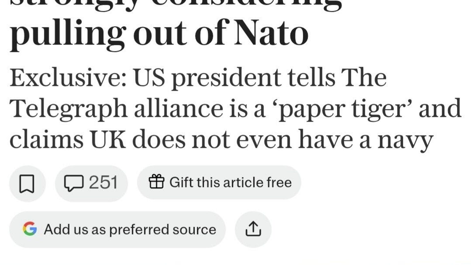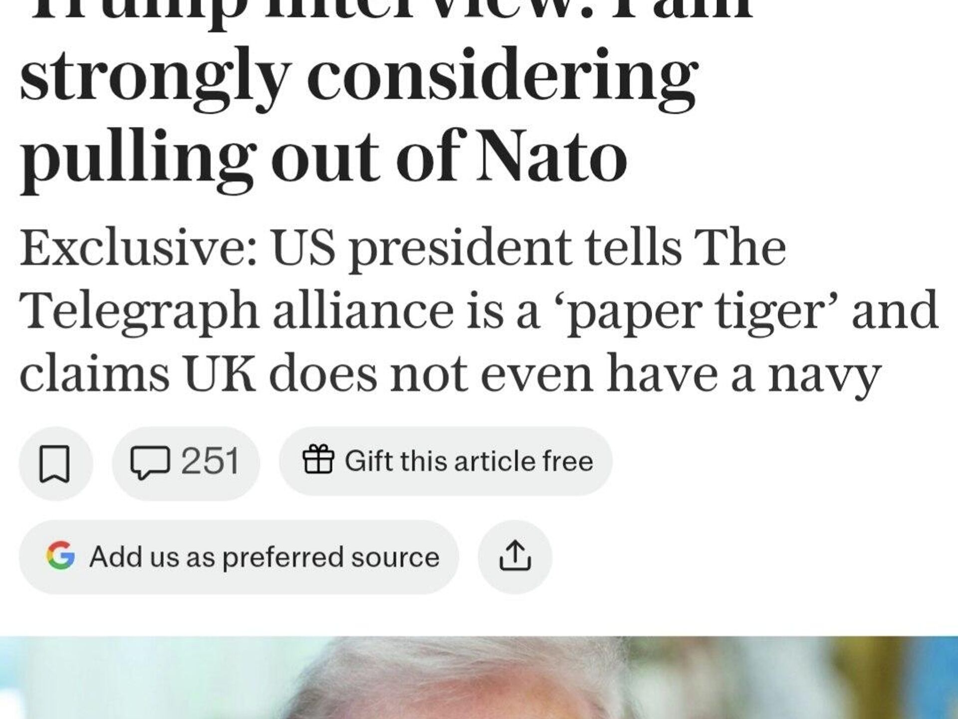 Трамп заявил, что "всерьёз задумался" о выходе США из НАТО