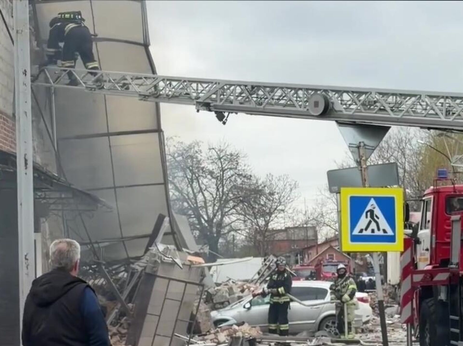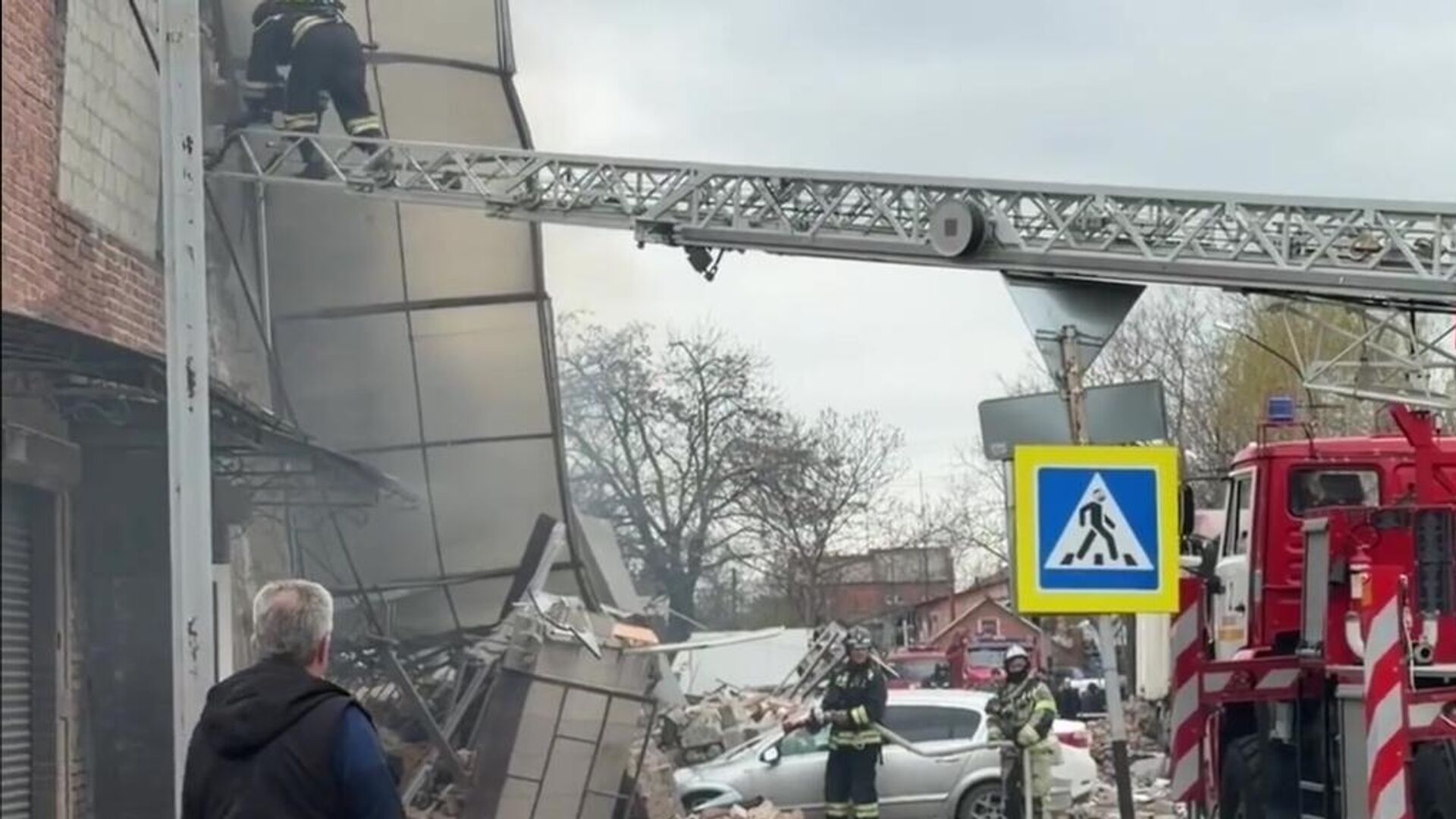 По его словам, здание разрушено полностью. По предварительным данным, произошла детонация пиротехники в складе, который находился рядом.