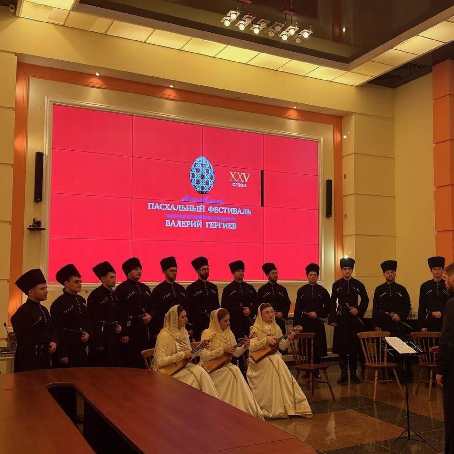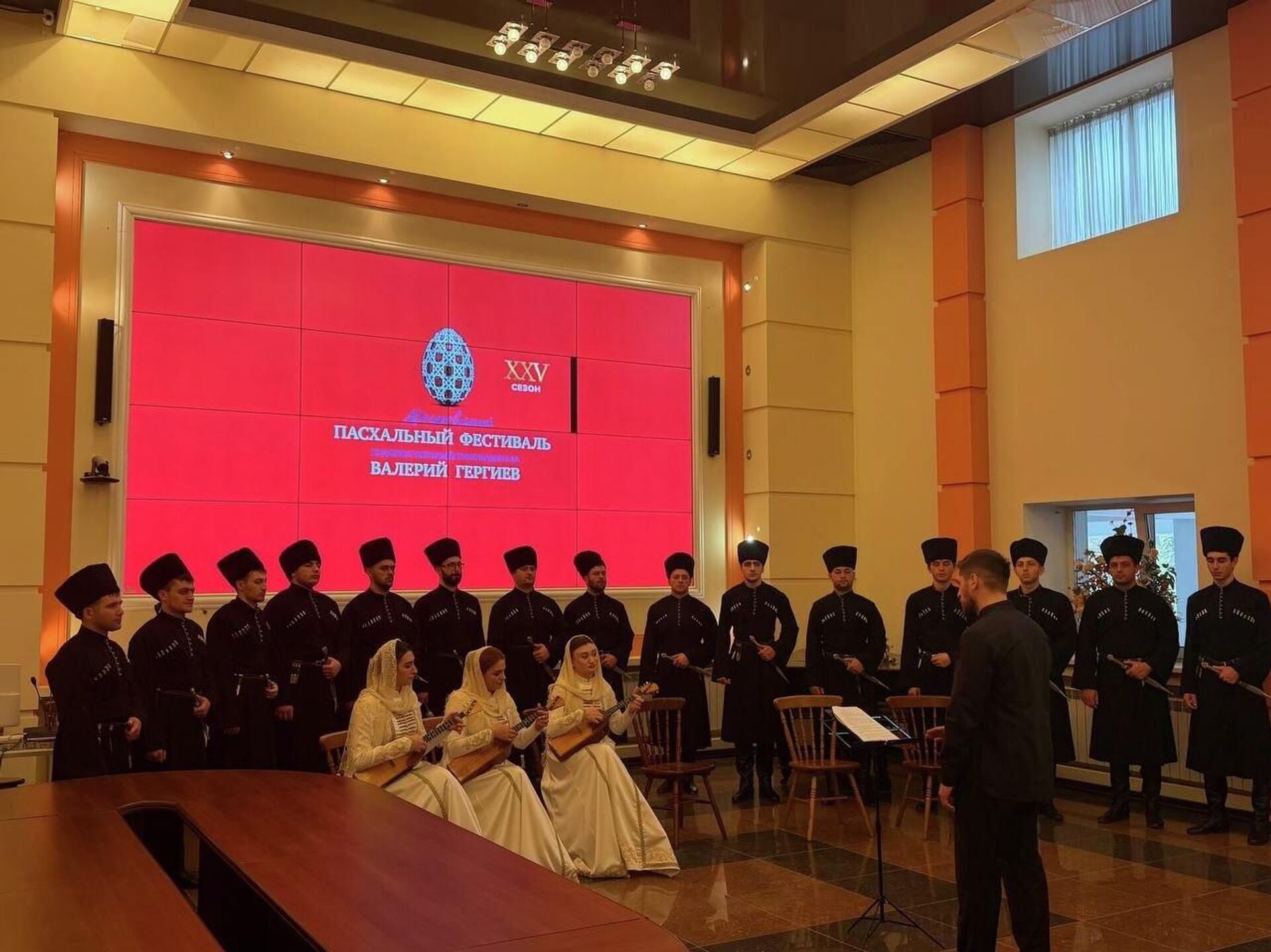 ЦХИНВАЛ, 24 апр – Sputnik. Государственный хор Южной Осетии под управлением художественного руководителя Сармата Кабисова выступил в прямом эфире программы "Доброе утро" на федеральном канале в рамках юбилейного XXV Московского Пасхального фестиваля Валерия Гергиева.