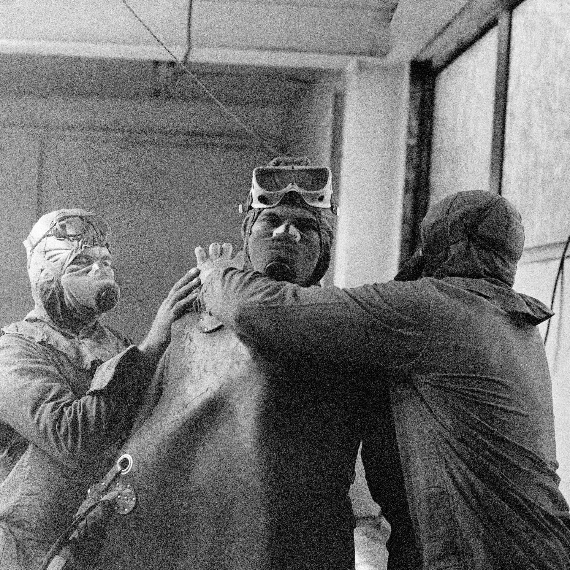 Практически постоянно ликвидаторов сопровождал звук вертолета в небе: с железных птичек разбрызгивался специальный сорбент, который скреплял почву, чтобы она меньше пылила - основная опасность исходила от пыли.