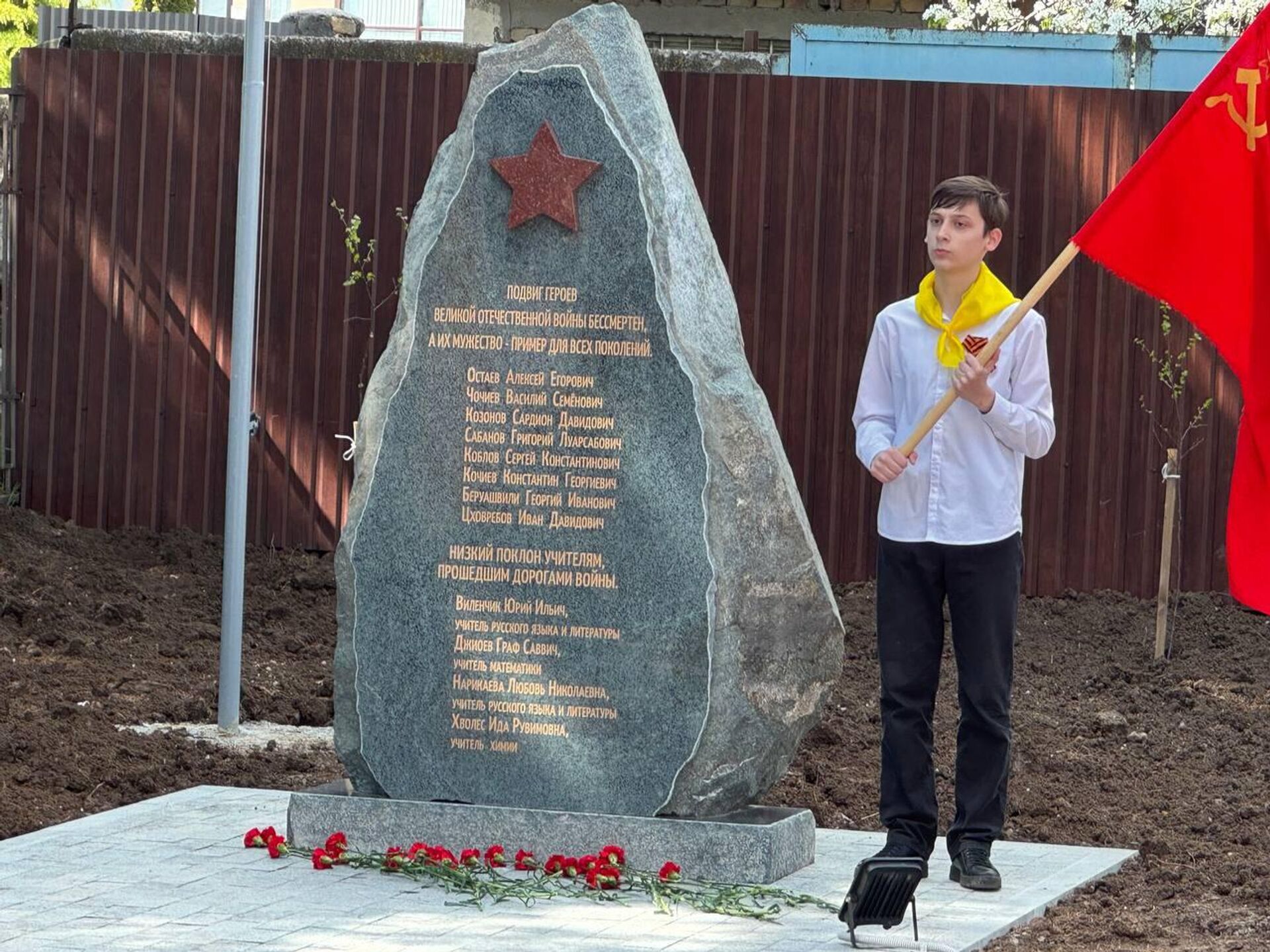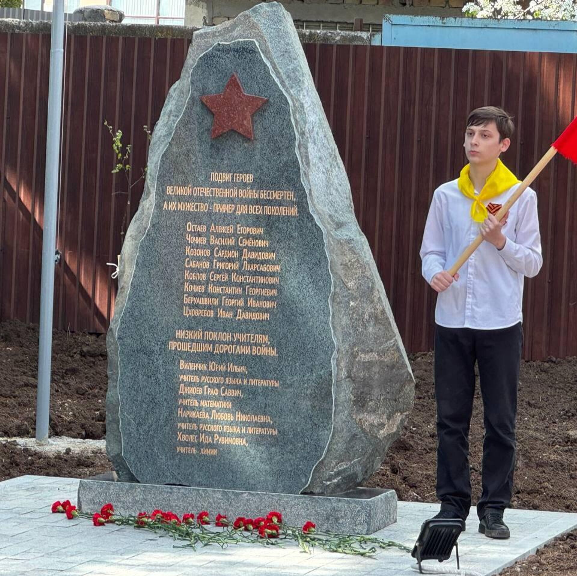 ЦХИНВАЛ, 29 апр – Sputnik, Олег Джагаев. Во дворе средней школы № 6 в столице Южной Осетии в среду прошло торжественное открытие стелы восьми Героям СССР из... 29.04.2026, Sputnik Южная Осетия
